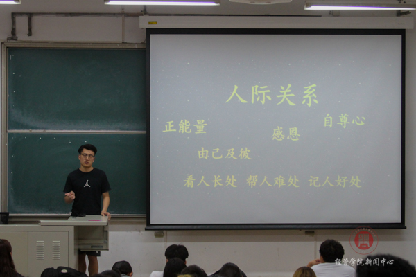 第一位为大家分享经验的是16级农林经济管理专业本科生岳升平,他作为市级优秀宿舍的代表为同学们分享了学习、工作、生活以及人际关系和谐化的点滴经验,如何将一个人的优秀传递到四个人,如何集四个人的优秀为整个宿舍的优秀,经过初到学校的相识,到渐进相知,而后到现在共同努力创造出的阶段性成果,美好大学生活让他们更加优秀,并且他们也让优秀成为一种习惯。