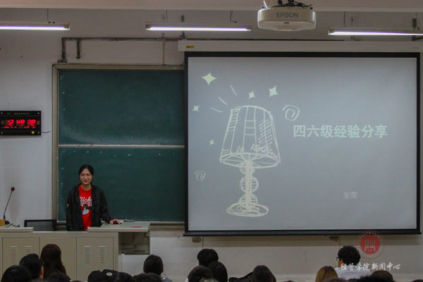 最后是兄弟博彩公司排行榜食品科学与工程博彩公司排行榜食品质量与安全专业15级本科生车莹同学为我们分享四、六级备考经验。她为大家介绍了四、六级考试模块,讲解了每种题型的学习方法。英语是一门需要积累并反复的学科,并且每天都接触它,背单词、做阅读要讲究技巧,要找到词组构成的规律,形成有效记忆,而不是死记硬背。她为我们分享了影响自己英语学习的经验:翻看、聆听具有影响力的报刊杂志,将肥皂剧的时间转换成原声美剧,整合碎片时间背单词,复习累积要循序渐进、持之以恒,自己也要不断涉猎各方面的文化知识。