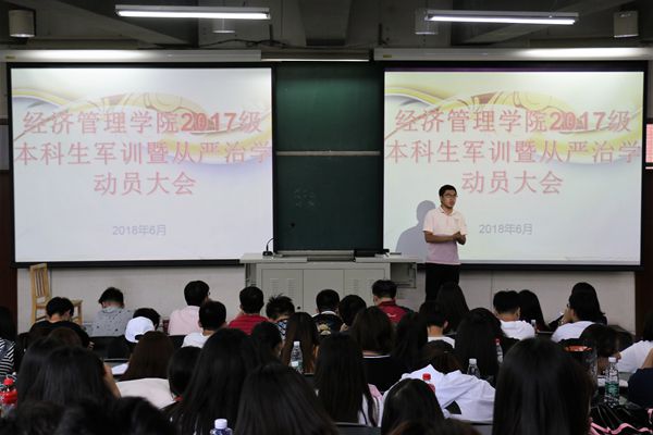 其次,邬津老师按照学校武装部的统一部署和要求,认真细致的做了军训动员。他为同学们介绍了军训基地的基本情况和军训的详细安排,重点强调了可带物品和禁带物品。他用“遇门三思而后不出”等幽默的语言,再三强调军训时需要提升自身的规矩意识、服从意识、安全意识和纪律意识。