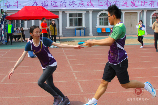 本次运动会的第一个接力项目8×200米经管的健儿们不负众望,8个人向着同一个方向、同一个目标而努力,每个人都拼尽全力,最终拿下了第三名。