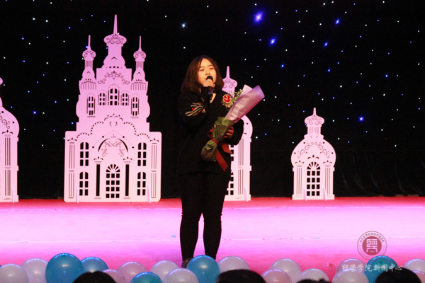 17级国贸班同学为大家带来的是小品《模特》。整个故事围绕着一个模特假人爱上一个绝症女孩展开,用欢快的氛围演绎了一个悲剧的故事,看完后笑中带泪。动漫社为大家带来的是宅舞《START DASH》。近十位萌妹子穿上了可爱的动漫服装,踩着动感的节拍,跳着欢快的舞步点燃了观众心中的火焰。场下的二次元爱好者甚至站起来跟着鼓点挥舞着荧光棒。一支舞蹈结束,观众还久久沉浸在欢乐的气氛中,精彩的节目一次次将迎新晚会推向高潮。