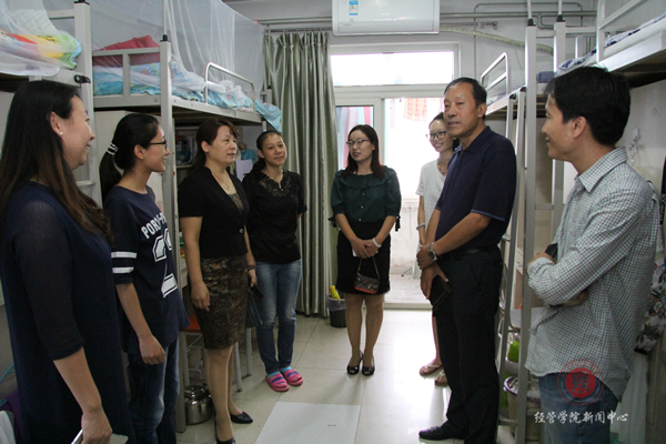 党总支书记胡宝贵老师,院长刘芳老师,科研副院长唐衡老师,教学副院长刘笑冰老师,学生工作副院长张晓凤老师及2017级辅导员到宿舍走访慰问了新报到入学的研究生和本科生。领导们就宿舍环境适应情况和新生们家庭情况等问题对新生表示亲切地慰问,并希望新生尽快融入到北农的大环境中来,安排好生活,调节好节奏,以全新的面貌迎接新学期。