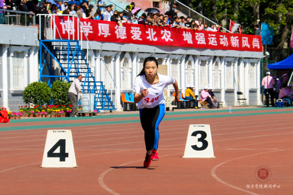 只见运动员们各个屏气凝神,站在各自指定的跑道上,等待着这场速度与耐力的真正较量。“砰”的一声枪响打破了赛场的宁静,她们以百米的速度征服了第一圈,在第二圈,她们虽然露出疲惫的神情,但眼神依然坚定。看台上同学们的加油声如排山倒海般经久不息,主席台上传来的加油稿也表达着同学们对他们最迫切的期盼和最深情的祝福,而这些,都化作成功的助推器,为运动员们增添了无限动力。