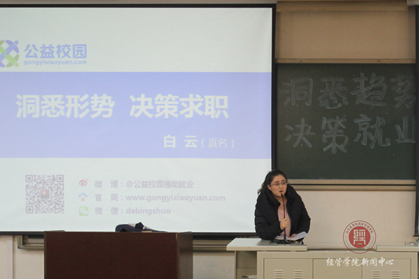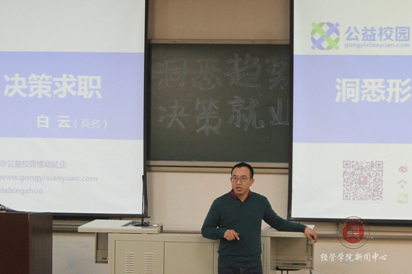 讲座伊始,白云老师就以他幽默风趣的言谈迅速活跃了现场的气氛。并以他的亲身经历和如今的社会环境为学生们进行了详细的讲解。