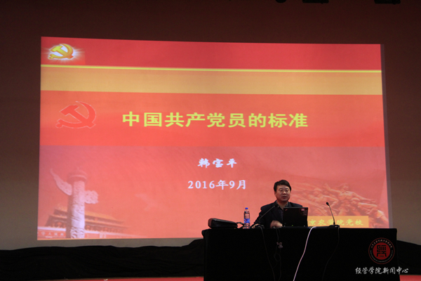 首先由韩宝平教授做有关党员发展程序及要求的讲授,韩老师就党员标准做了基本标准、历史标准等发展党员的标准的详细讲解。听课的学员一边认真的听课,并认真的做课堂笔记,课堂氛围良好。