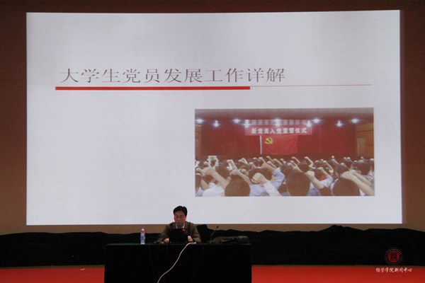 组织部部长赵和文教授给学员详细的讲述了发现党员的程序,并阐述了发展党员的具体要求。并督促积极入党的学员适度抓紧,努力学习,积极参与相关活动,并强调每月一次的思想报告的重要性。最后,赵老师再一次强调时间对于积极入党的重要性。学员们用热烈的掌声感谢了赵和文部长的详细讲授。