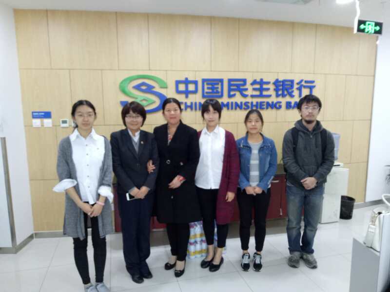 2013级投资学专业的胡鑫瑶、李珊,农经专业的韩丹3位同学在民生银行进行对公、对私业务、小微贷部门进行顶岗实习并定期轮岗。基地实习负责教师梁娜介绍了学生的实习情况,实习基地指导教师对学生的实习情况进行充分的肯定,对学生认真的工作态度和能力给予了很高的评价。