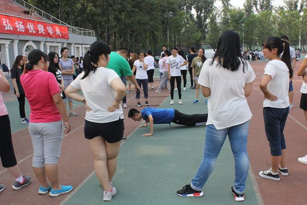 学生会举办的新生素质拓展活动在操场顺利进行。此次素拓活动分两次进行,全体16级经管新生均参与其中。