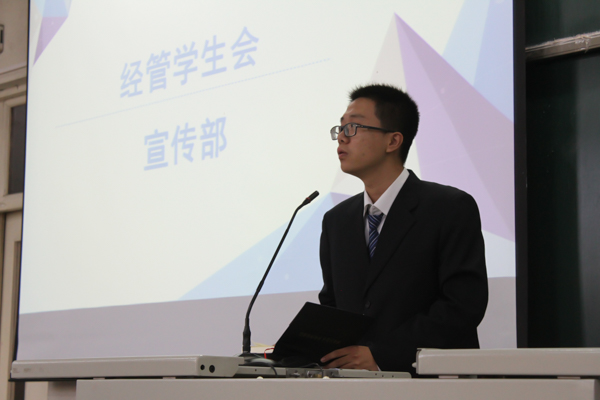 紧接着学生会的协助部门部长、经管院青协、经管院社联及新闻信息中心都对自己所管辖的部门进行了简短的介绍,并且使出浑身解数,风趣幽默的语言不时引起在座同学的阵阵笑声,现场气氛十分活跃。