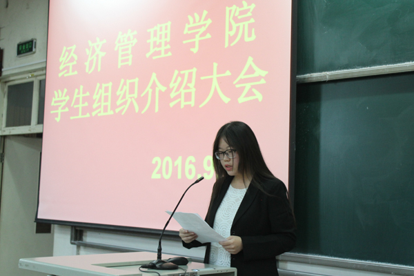 16级学生组织介绍大会。到场的人员有团委张子默、马宇然、学生会主席颜佳雯、青协会长吕雅杰、社联主席邢云飞、新闻信息中心主任王晰以及其他各部门部长和16级全体新生,此次会议由团委助理主持。