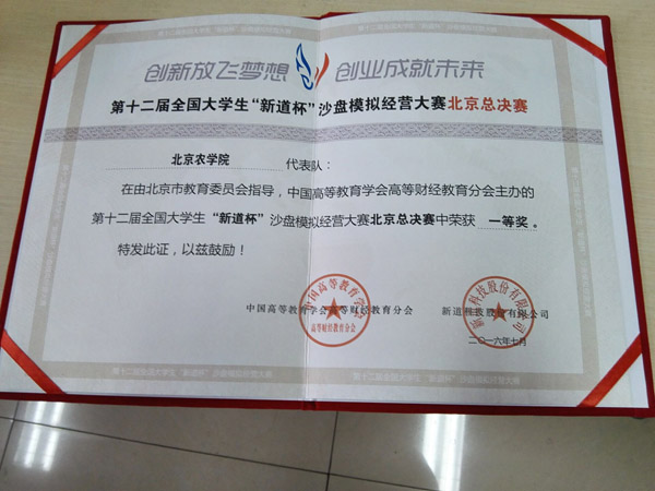 此次比赛在北京工商大学良乡校区文科实践中心隆重举行,并成立了北京赛区高校联盟。各高校联盟参赛,提高北京赛区的比赛质量。大赛分为31组,北农同学分为AB队出赛。经过周六日两天的比赛最终取得了小组第七、市级一等奖的好名次,为校争光。