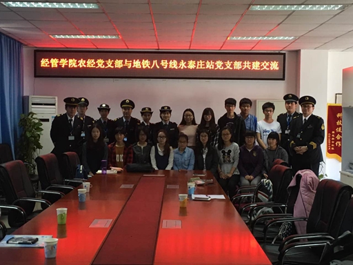 副院长赵金芳老师、农经学生党支部书记刘笑冰老师、北京地铁运营三分公司永泰庄站区区长、站区书记、副站区长、其他工作人员及农经学生党支部部分党员与积极分子。