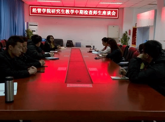 研究生教学中期检查师生座谈会在经管楼401举行。参加此次会议的有研究生督导隋文香老师、研究生秘书任娇老师以及2013、2014和2015级班长、团支书和学生代表。会议由任娇老师主持。