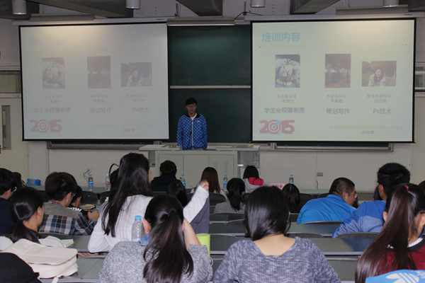 随后,宣传部部长杨迎楠向干事们介绍了有关Photoshop技术的基础知识,以PPT形式展现了ps技术的重要及强大,并用简练的语言讲述了PS软件的使用方法和技巧。