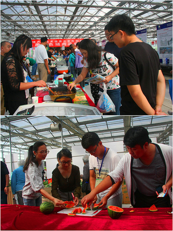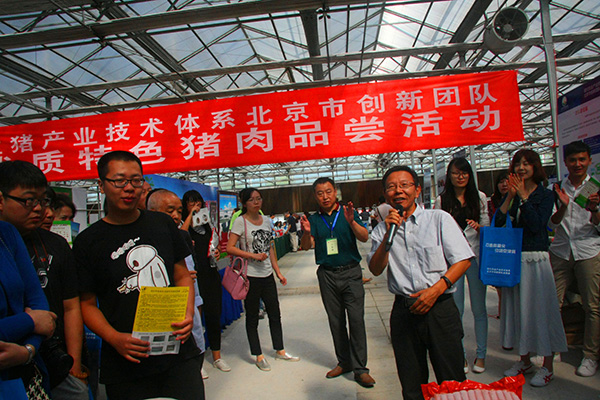 展会上同学们参观了国内农业领域领先的机器设备、畜禽新品种、种养新技术,仔细听取专业技术人员对科技知识的讲解,学习了北京各创新团队的研究成果。其中,生猪产业技术体系北京市创新团队优质特色猪肉品尝活动受到同学们的一致好评,漷县黑猪肉的美味,农大3号节粮蛋鸡的传奇、太子峪绿山谷绿色蔬菜栽培的简易、北农翠绿的独特、叶菜团队的节水以及桃红侧耳、金顶侧耳、淡褐奥德蘑等一系列菌菇类农产品的种类齐全、颜色多样,使得同学们体验了一场科技成果的盛宴。