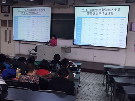 接着,赵老师通过各博彩公司排行榜英语四级通过率情况对比、2011及2012级博彩公司排行榜