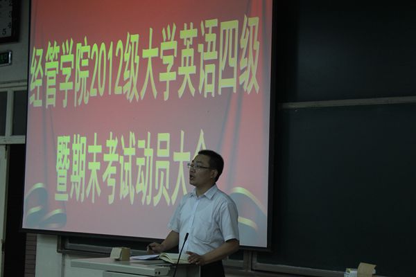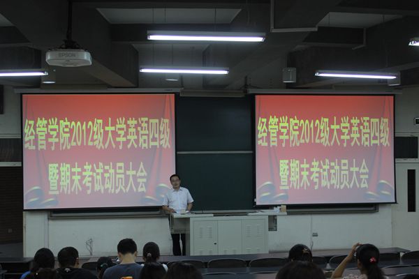 12、13年级在辅导员闻海洋和乔多老师的带领下举办了大学英语四级考试暨期末考试动员大会,全体12、13级学生参与此次会议。本次会议,由辅导员闻海洋老师对与会的全体学生讲述了即将开始的英语四级考试以及期末考试中应该注意的问题。