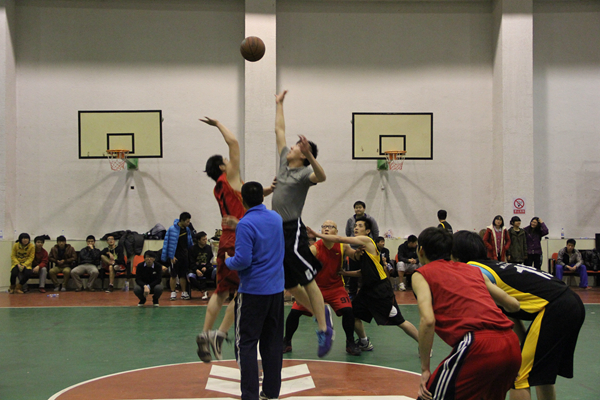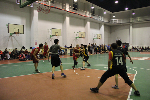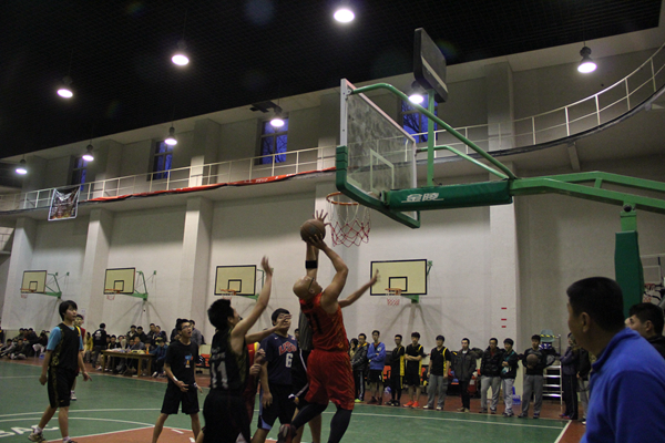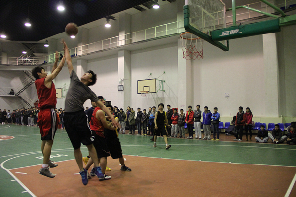 决赛当天,篮球馆人山人海,前来观战的同学们都在卖力的为自己所爱的球队加油,在观众们热烈的呐喊声中——比赛开始了。比赛开始经过一番拼抢、妙传、上篮,经管队员率先得分,场下观众报以热烈的掌声,场上经管队员士气大振,又在一记成功抢断的铺垫下快攻得分,比分迅速拉开。