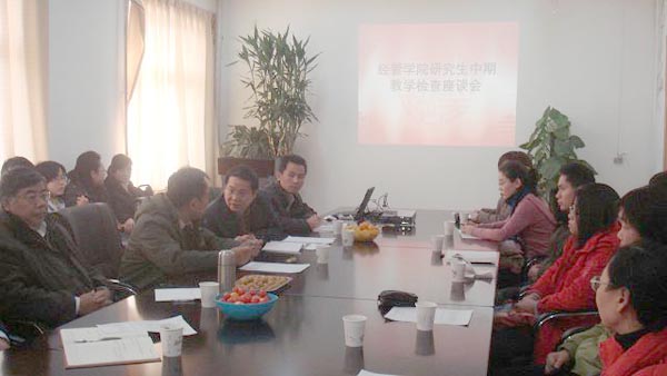 研究生培养计划、教学大纲,并对研究生教学管理工作中存在的一些问题与与会师生进行了热烈的讨论。邓蓉教授和陈跃雪教授就本人教学工作情况向在座的师生进行了汇报,帮助研究生解答了学习当中所存在问题和困惑。与会研究生也对本人近期的学习生活情况进行了总结,同时,他们也提出了一些有意义的建议。