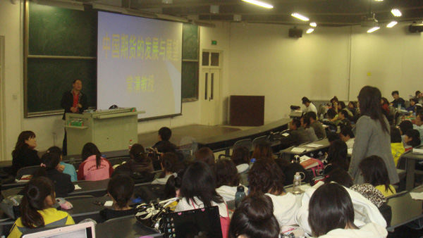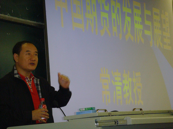 常清教授从金融危机讲到中国期货市场的创立;从期货及金融衍生品的概念、功能及期货市场在全球商品价格确定环节中的作用、期货交易在对外贸易中的套期保值作用,讲到未来中国期货市场的发展。整个报告深入浅出、高屋建瓴,其间还对同学们关心的相关问题进行了广泛交流。