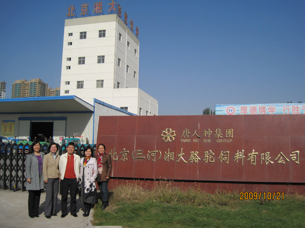 2009年10月21日,农业经济管理教研室陈娆、田淑敏、何美丽、曹暕四位老师到北京(三河)湘大骆驼饲料有限公司接洽教学实习基地,并对该公司进行了实地参观。