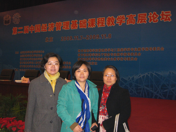 农经教研室教师陈娆、曹暕、何美丽应邀参加了《第二届中国经济管理基础课程教学高层论坛》。本次论坛由全国高等学校教学研究中心及教育部高等学校经济学、工商管理、公共管理等六个学科专业教学指导委员会主办,对外经济贸易大学承办。