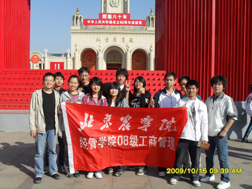 08级工商管理专业的入党积极分子集体到北京展览管进行“祖国成立60周年成就展”的参观和学习。