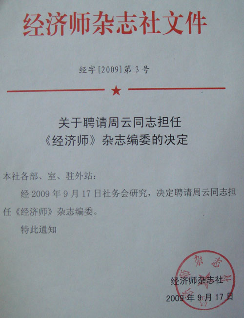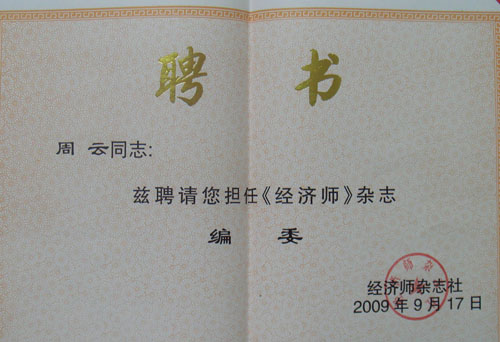 博彩公司排行榜 周云老师被聘为中国《经济师》杂志社编委委员,《经济师》是全国经济类核心期刊,是经济管理学术界很有影响的学术期刊之一。周云老师被聘为编委委员扩大了我院的社会影响力。