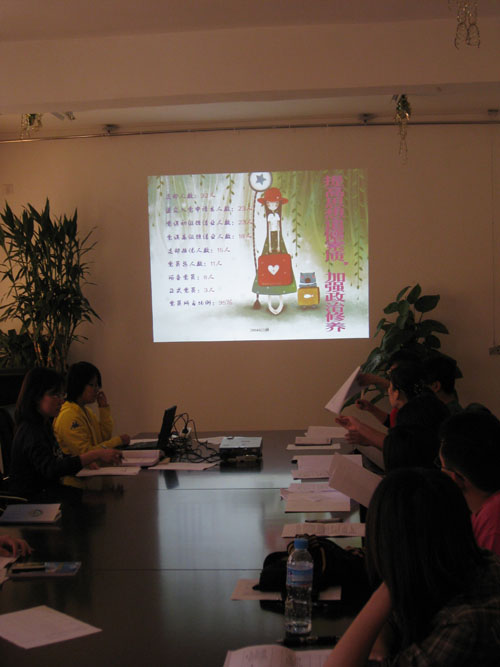 本次答辩分为10个小组,各组班级代表按照指定的答辩顺序,结合设计的幻灯片作品,一一对自己的班级进行了详细的阐述,整个答辩过程中各组都有条不紊的进行。