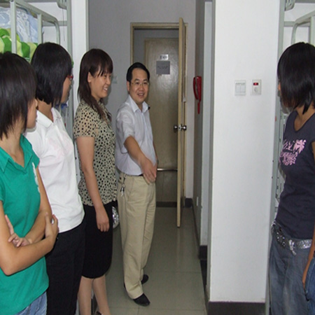 学生所在宿舍区参观慰问,关心学生的生活情况。询问新生对宿舍条件是否满意,是否适应新的环境、新的生活。并嘱咐新生要好好学习各方面的专业知识,锻炼各方面的能力,使自己在大学期间得到充分与全面的发展。