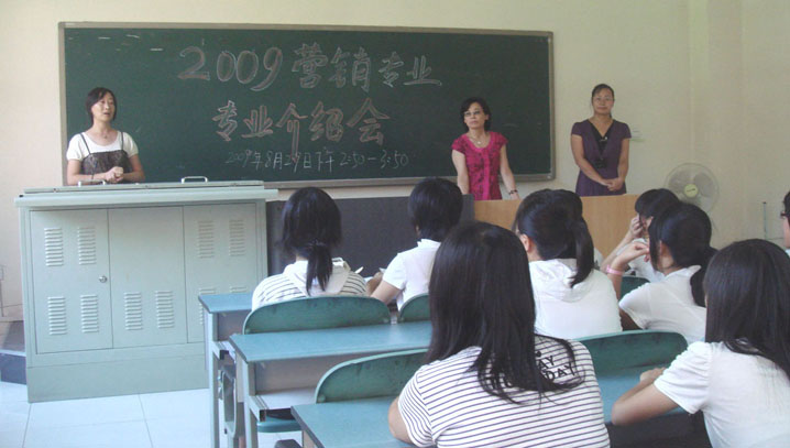 2009级市场营销专业新生在教B105召开了新生专业教育会。新生班主任桂琳老师主持了此次会议。市场营销教研室主任刘瑞涵、教师吴春霞参会并针对营销专业培养情况和学生进行了交流。
