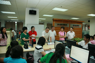 在文科实践中心赵学凯主任的引领下,我们重点观摩了“现代服务业综合实训”课程的组织实施。该课程以现代企业运营为核心,在企业经营过程中与现代服务业如工商、税务、海关、银行、保险、审计、咨询等各部门发生的业务联系与经济往来,模拟仿真现代服务业的真实环境,为经济管理类各专业学生搭建现代服务业实习大平台,使各专业之间进行有效整合。实现具有不同专业背景的学生在学习完各专业课程之后,走向工作岗位之前有一个全面触摸现代服务业的核心业务环节和功能的机会,并通过企业业务流程模拟竞争,使学生在企业真实的业务流与信息流中体会现代企业经营与现代服务业的内在联系。并通过知识的构建与反馈,使所学各专业知识得以融会贯通,从而获得现代服务业的更深层次的认识,为走向社会做好知识与心里准备。