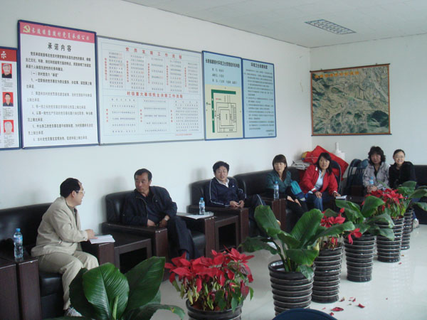 上午,康陵村的刘水年书记热情的接待了大家,并向大家介绍了康陵村的情况。刘书记首先介绍了村的地理位置以及村落的由来,随后介绍了康陵村的产业情况,村目前以果品(盖柿、梨、李子、杏等)为主,发展民俗旅游,这些年推出了“正德春饼宴”,并对以后的发展思路做了简要的介绍。结合自己的想法,根据科学发展观的要求,大家就林改、村财务、农民医保、村里不好处理的问题、村民选举、农业推广技术服务、合作社等关心的问题同刘书记进行了热烈的探讨。