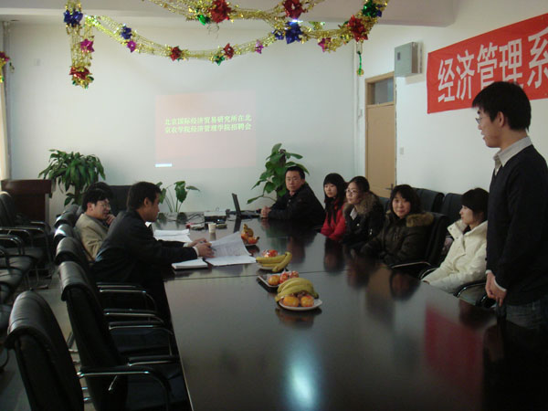 2009年1月14日,北京国际贸易研究所在我院举办了专场招聘会,同学们对用人单位所提供的就业机会表示了极大的兴趣。在集体面试后,徐申男所长还分别对每位同学进行了单独面试,对我院同学的总体素质和能力给予了充分肯定。
