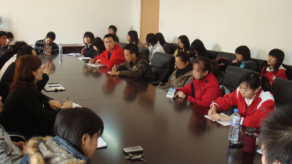 2008年11月7日下午,经管系按照期中教学检查工作的安排,召开了各班级学生信息员座谈会,有40多名学生信息员参加了座谈。会议由教学副主任刘芳老师主持,系主任何忠伟老师、副主任刘柳老师、教学秘书王雪坤和团总支书记王月参加了座谈会。