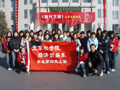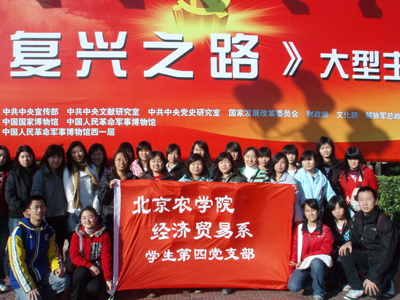 经济贸易系学生第四党支部全体成员共同前往中国人民革命军事博物馆参观由中共中央宣传部、中共中央文献研究室、中共中央史研究室、国家发展和改革委员会、财政部、文化部、解放军总政治部、中共北京市委主办,中国国家博物馆与中国人民革命军事博物馆承办的《复兴之路》大型主题展览。