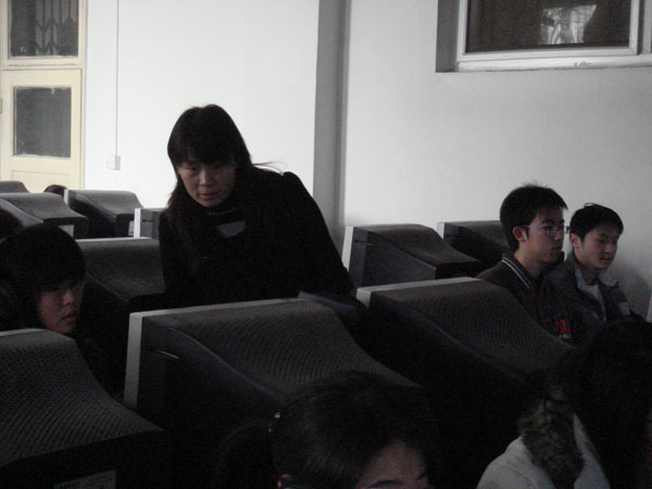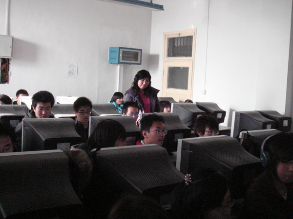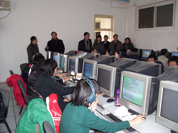 2008年1月8日上午,在教务处、院团委及经贸系领导的陪同下,王有年院长、王晓霞副书记和杜晓林副院长到经贸系机房检查小学期教学工作运行情况,肯定了经贸系在小学期教学工作中所作的各项工作,并对今后几天的小学期教学工作提出了建设性的意见。
