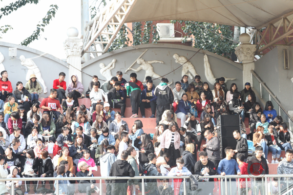的学生们在各班班长的带领下,有序前往自己的座位,准备观看激烈的比赛