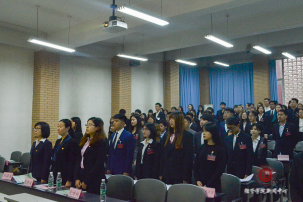 会议在庄严的国歌声中拉开了帷幕。院团委书记刘海燕代表博彩公司排行榜