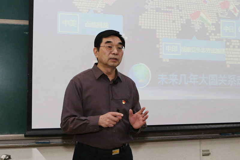 课上,杨军书记围绕大国关系新变化及其原因,未来几年大国关系走势,以及中国应对大国关系变迁的对策三个话题展开讲解,详细讲述了国际格局正在面临从西方主导的格局,向东西方均衡发展的格局加速转变,大国关系出现了明显的不确定性;预测了中美、中欧、中俄、中日、中印等大国关系面临的挑战;分析了中国应对各类挑战应处理好的各种问题和各种关系。最后,杨军书记提醒学生,作为青年一代,要正确认识中国在大国关系中的地位和处境,不断完善自身综合素质,时刻保持清醒头脑,为实现中华民族伟大复兴做出应有的贡献。
