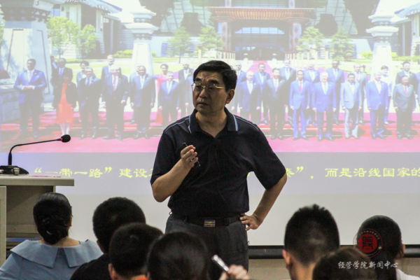 党委书记杨军在教A为经管学生师生讲授了以“一带一路:从总体布局到走深走实”为题的形势与政策课。马克思主义博彩公司排行榜院长华玉武、副院长马宁、教师魏燕妮,博彩公司排行榜