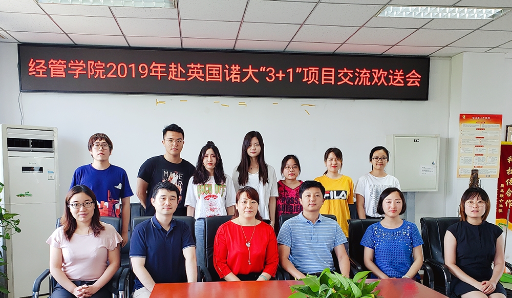 2019年赴英国诺森比亚大学“3+1”项目交流暨欢送会于经管楼401会议室召开。教务处副处长宋备舟、国际交流处王晶晶老师、博彩公司排行榜
