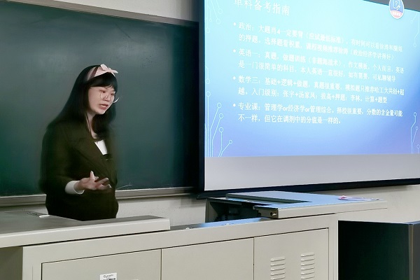 考研交流会在教B205如期举行。本次会议邀请了在读研究生和拟录取的大四学生,为目前大三有意向考研的同学讲解考研的注意事项以及相关常识。