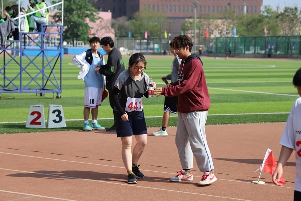 学生会的工作人员早早就来到了服务台和运动场,致力于为观众和运动员提供最好的服务,在紧张热烈的赛场中传递着青春的激情。