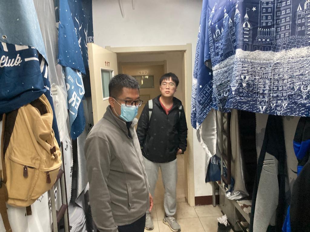 党总支副书记、学生工作副院长张晓凤带领全体辅导员对学生宿舍进行了安全检查。