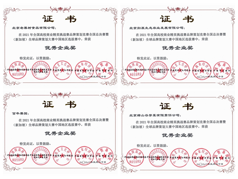 积极与老栗树聚源德种植合作社、北京百年栗园生态农业有限公司、归原生态、北京绿山谷芽菜有限责任公司4家涉农企业开展校企合作,组建了由6名指导教师和18名学生参加的4个品牌方案策划团队。