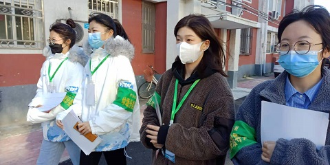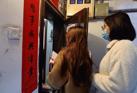 党的志愿者们进入小区逐个单元挨家挨户的开展工作。