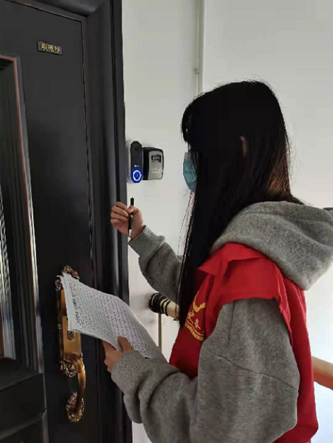 志愿者们首先挨家挨户排查离京情况、是否去过高风险地区,并对住户进行了有关新冠病毒的知识普及,提醒每户居民注意自我保护。