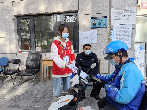 社区开展了定期的疫情防控志愿服务。志愿者们的加入,大大缓解了社区疫情防控的压力。