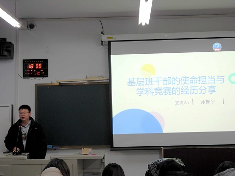 孙振宇同学演讲的题目是《基层班干部的使命担当与学科竞赛的经历分享》,身为20级会计学3班的团支书,他有着身为学生干部的责任与担当,以身作则、工作热情、成绩优秀,同时积极参与各种学科竞赛,充实自己的学习生活。他一直坚持着自己的初衷,从没有放弃过。